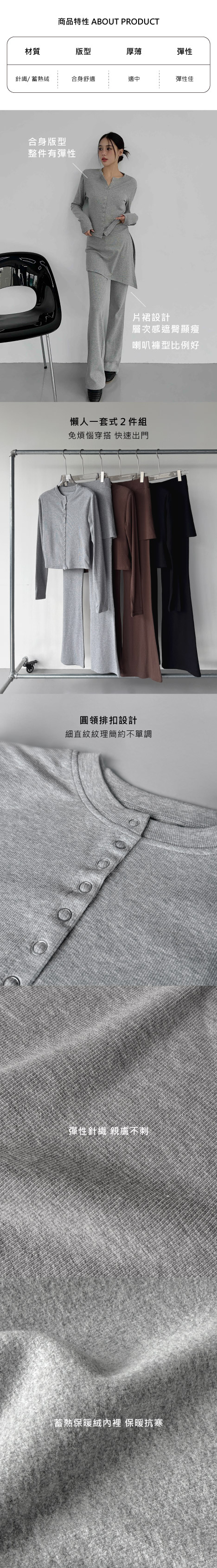 蓄熱保暖絨‧修身片裙喇叭褲套裝