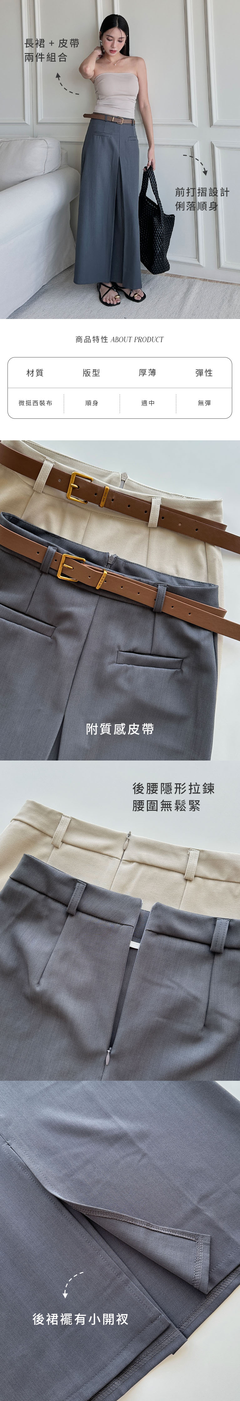 前打褶俐落剪裁西裝裙(附腰帶) 0030206030