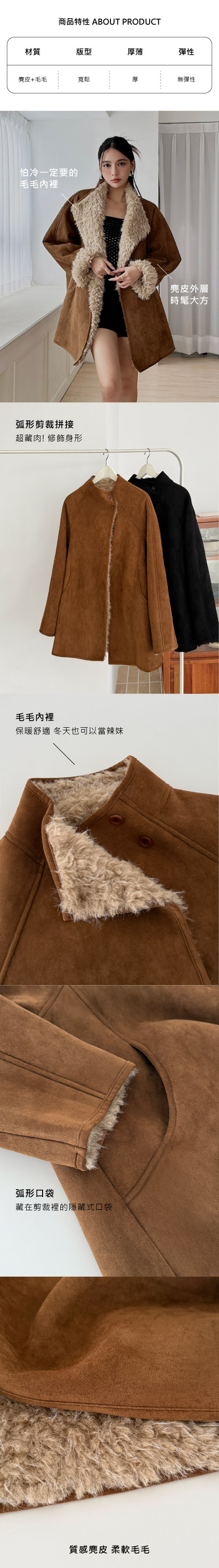 (預購12/5到貨)弧形剪裁毛毛外套