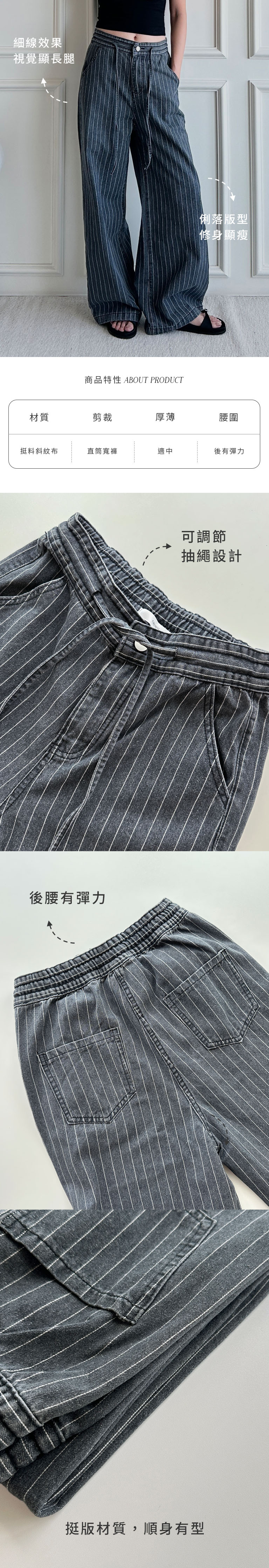 細線條紋抽繩寬褲 0030200107