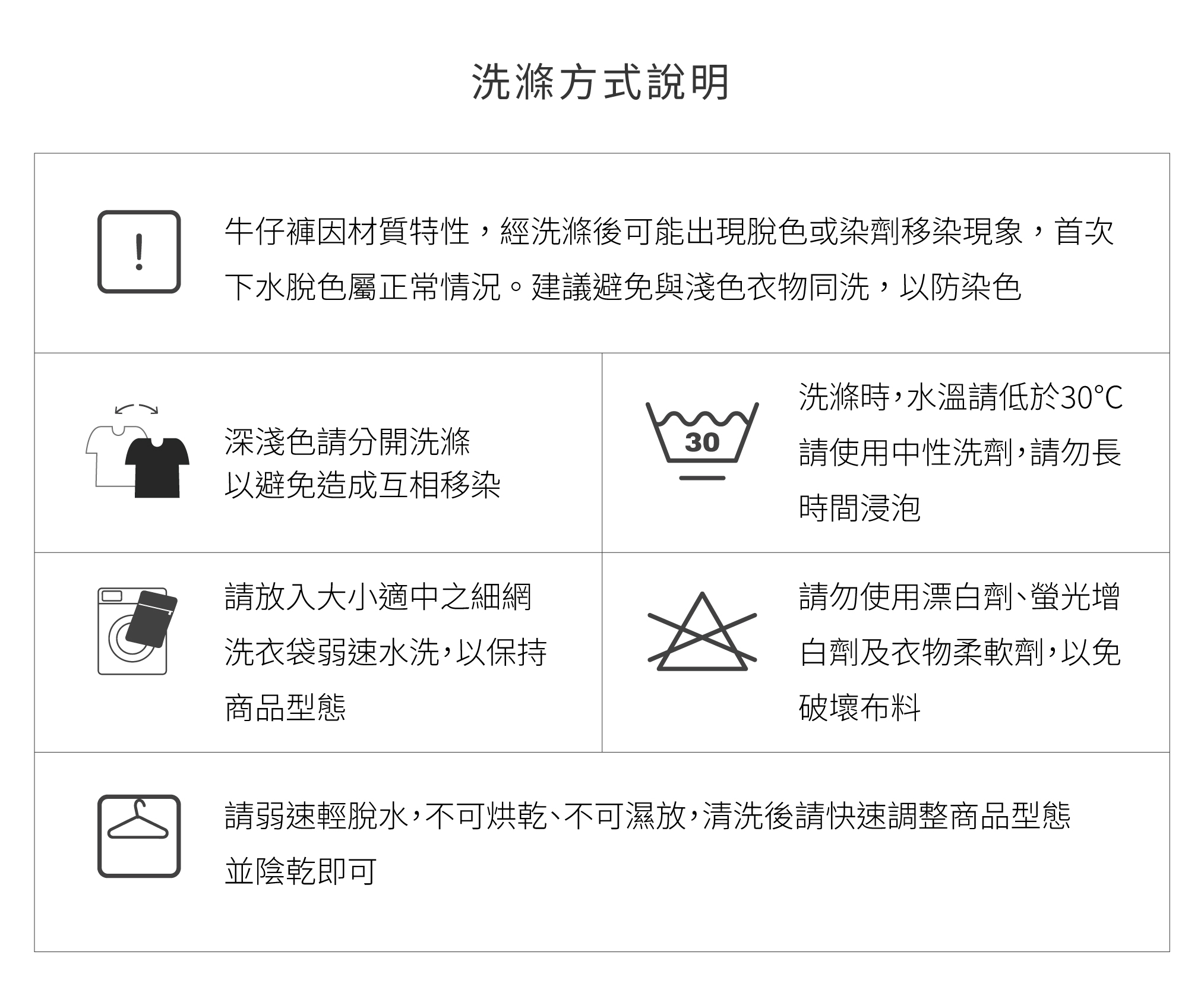 1.深淺色請分開洗滌,以避免造成互相移染。