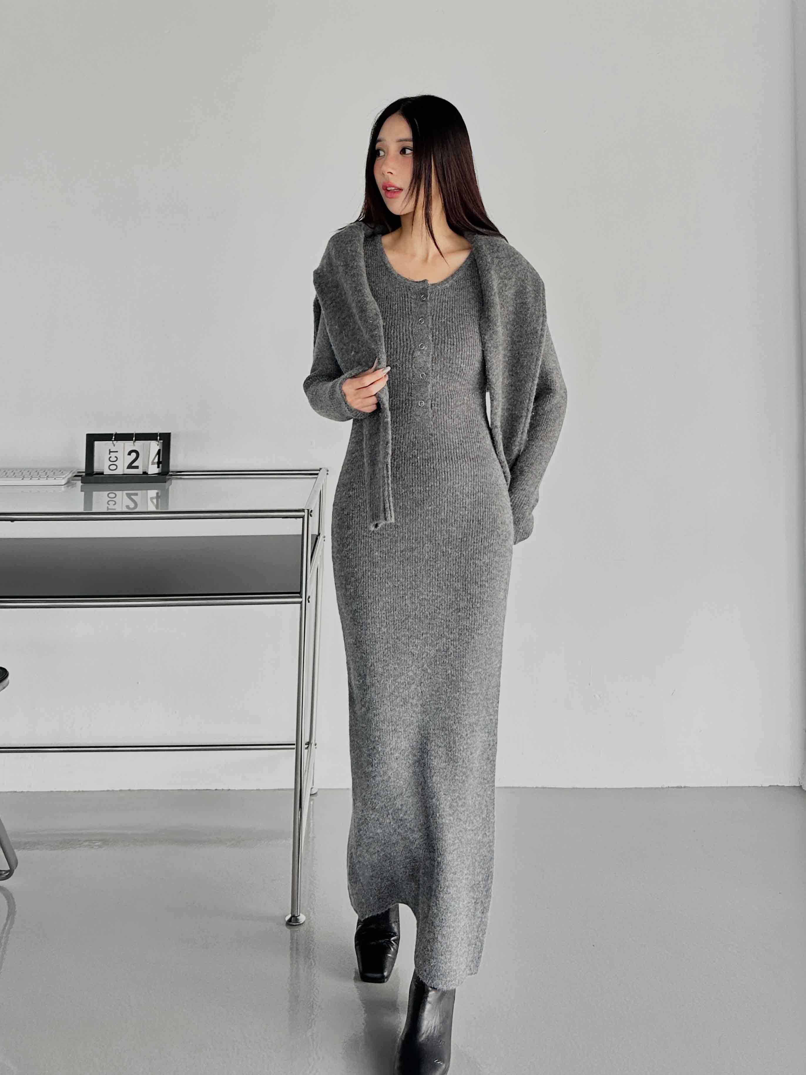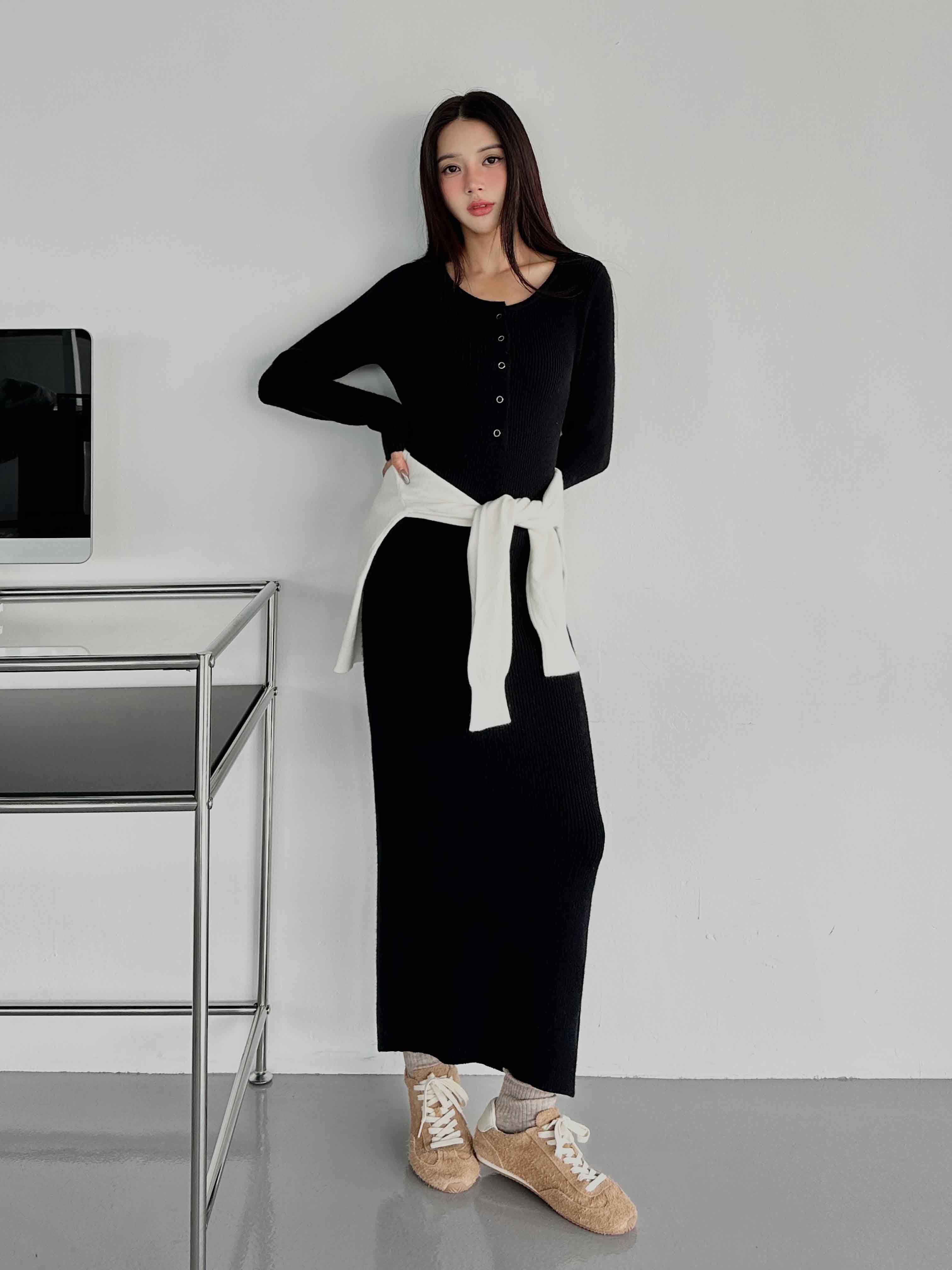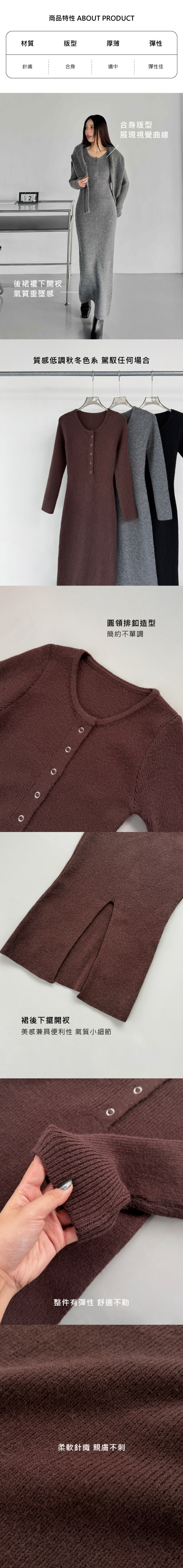 圓領排釦針織洋裝
