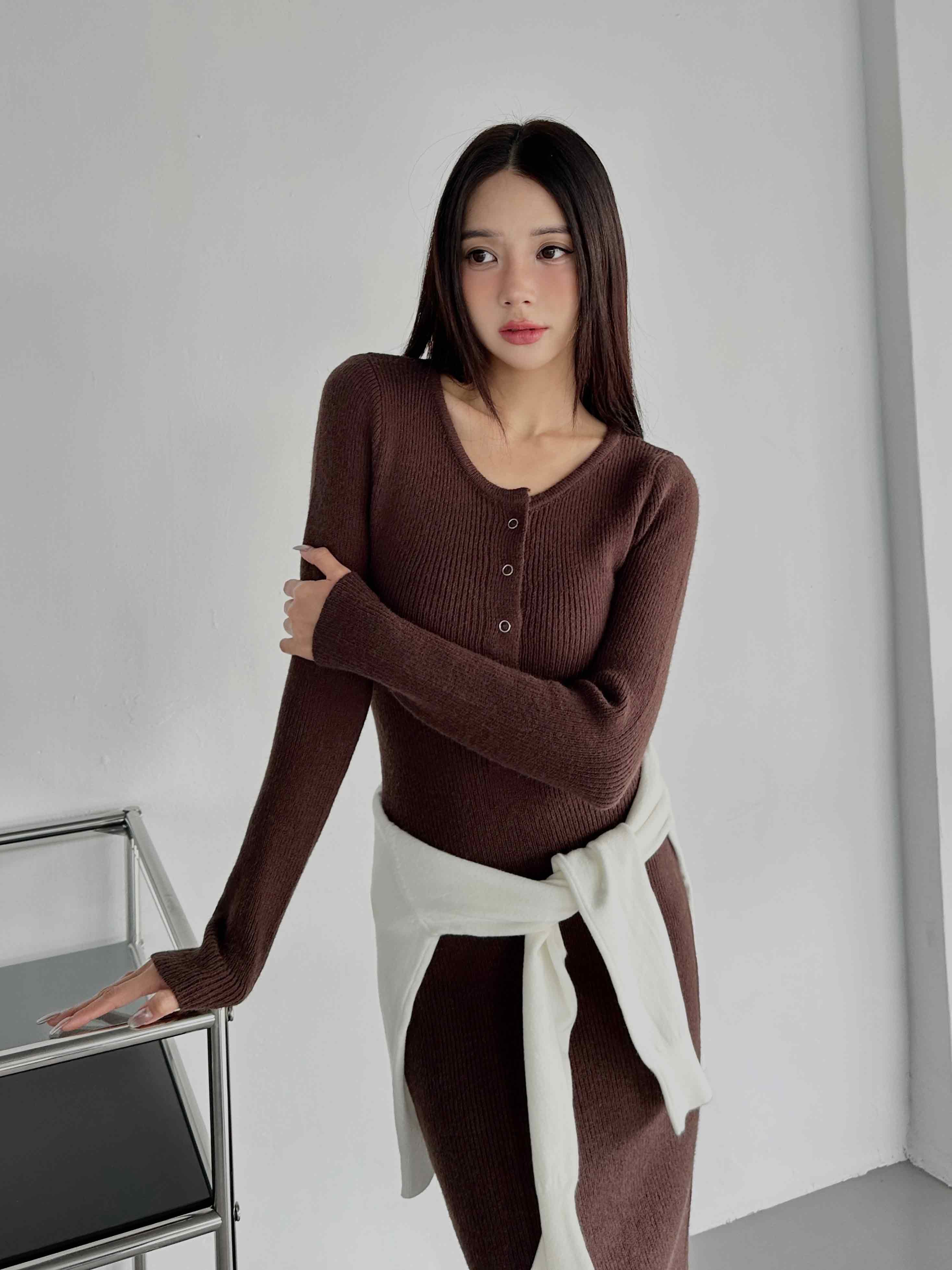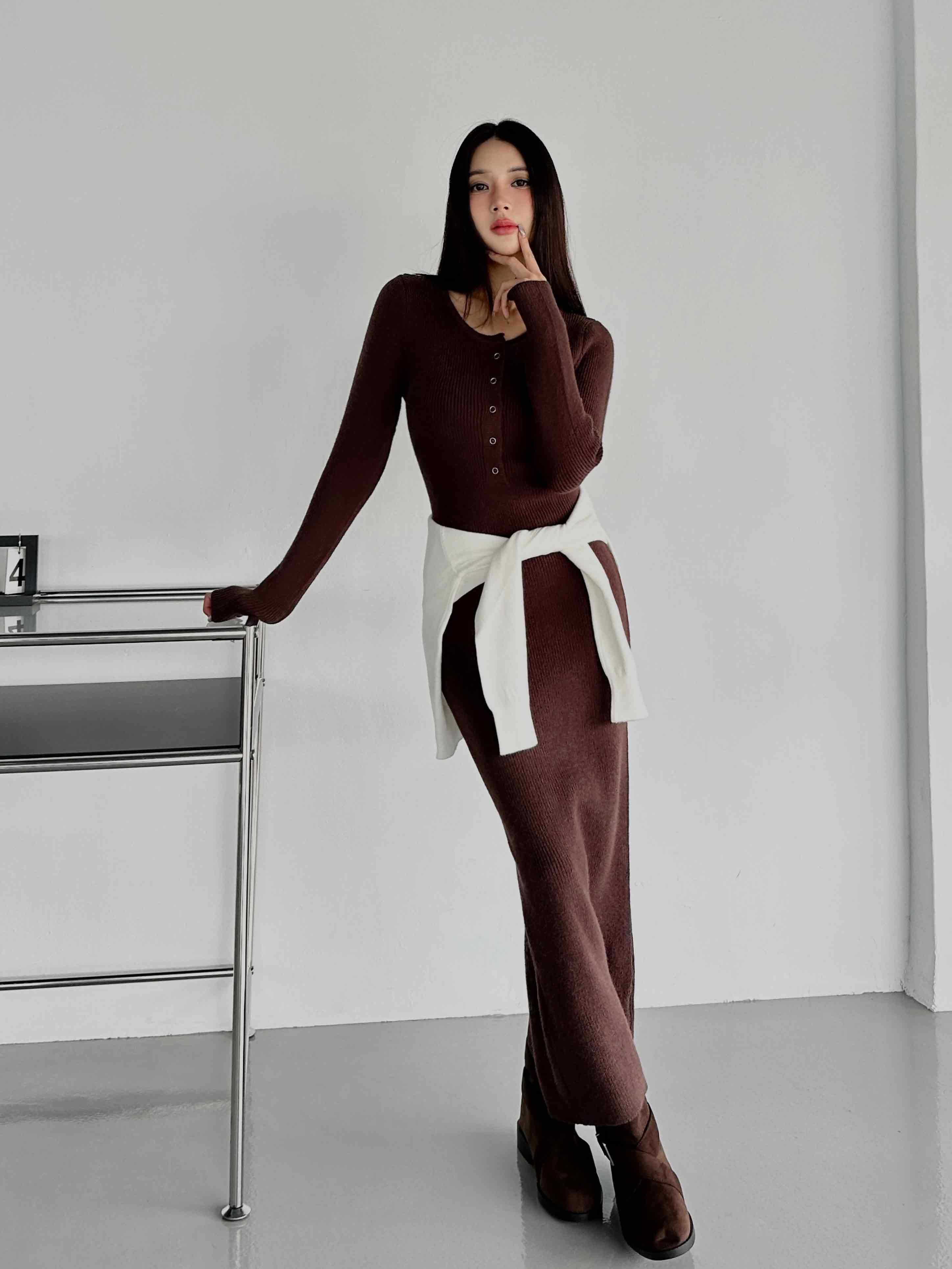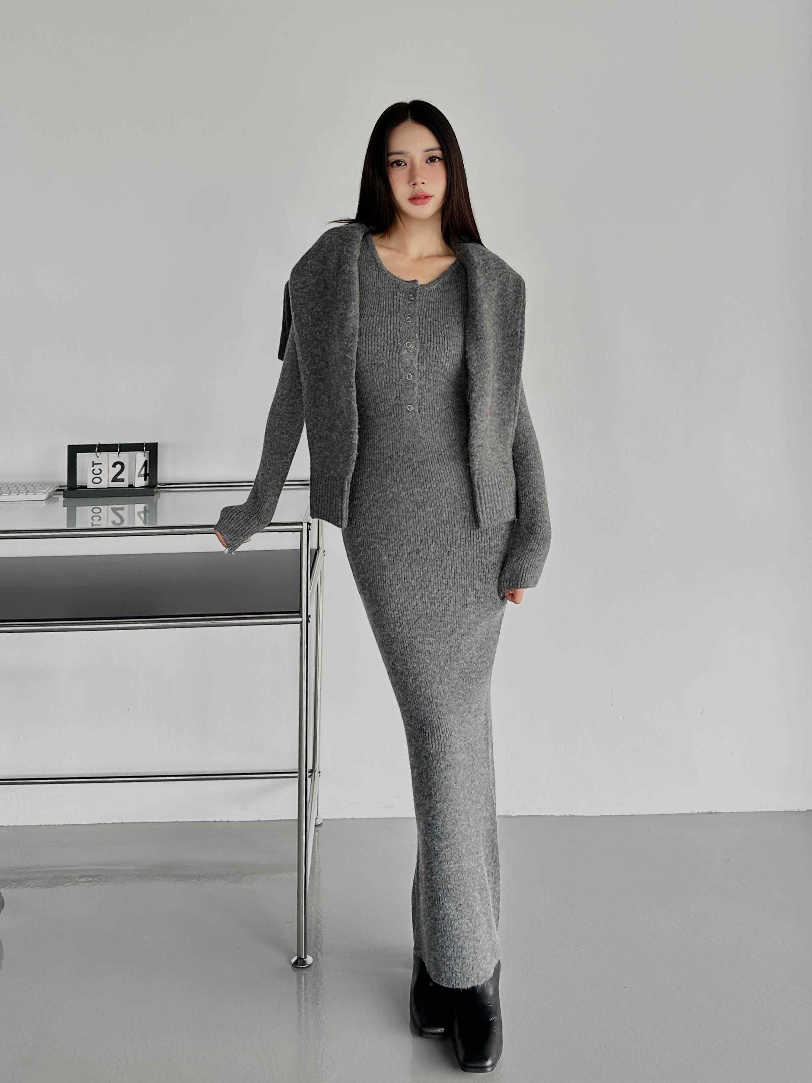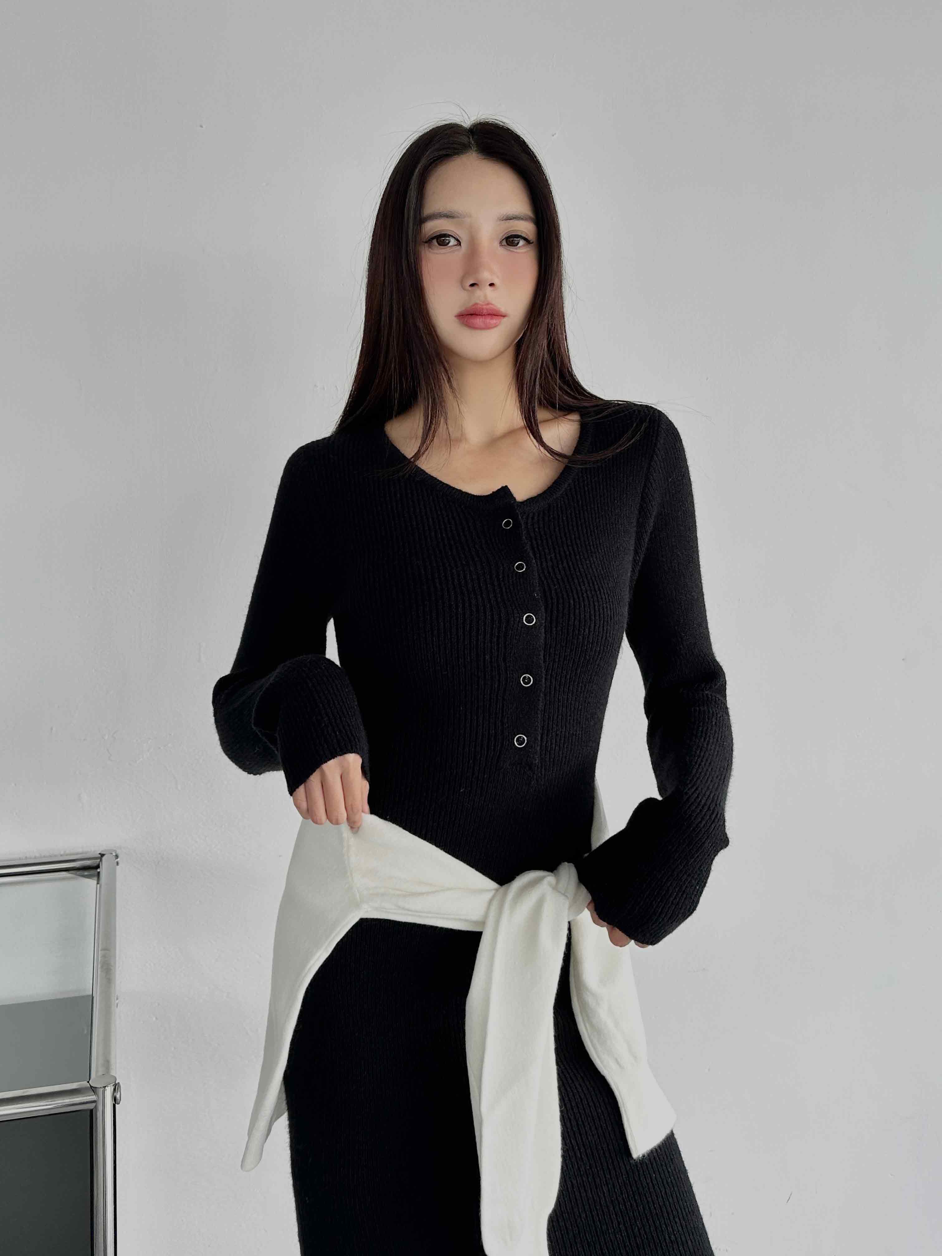 圓領排釦針織洋裝