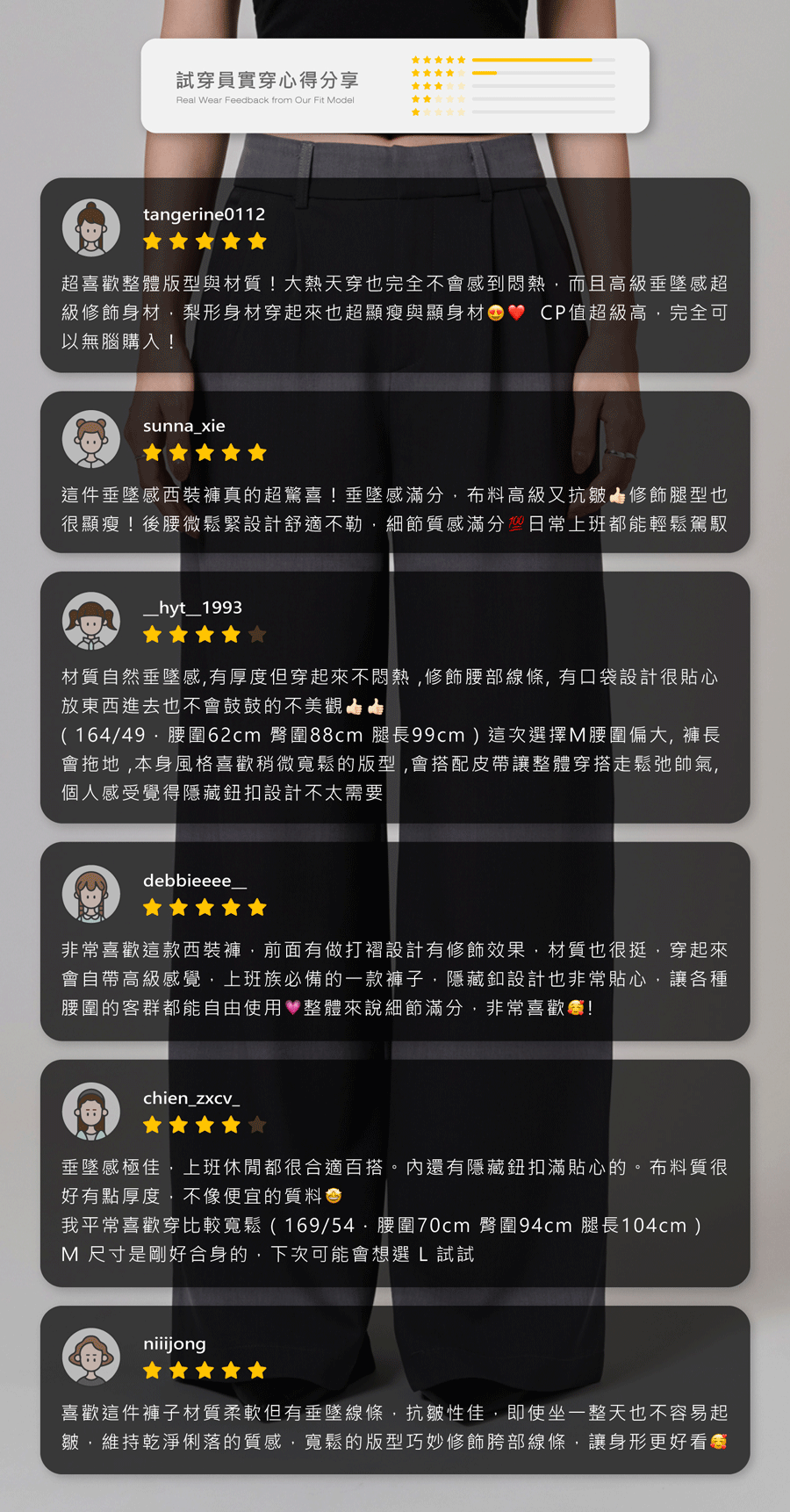 *穿著時,請留意避免與配件包包等他物接觸摩擦。