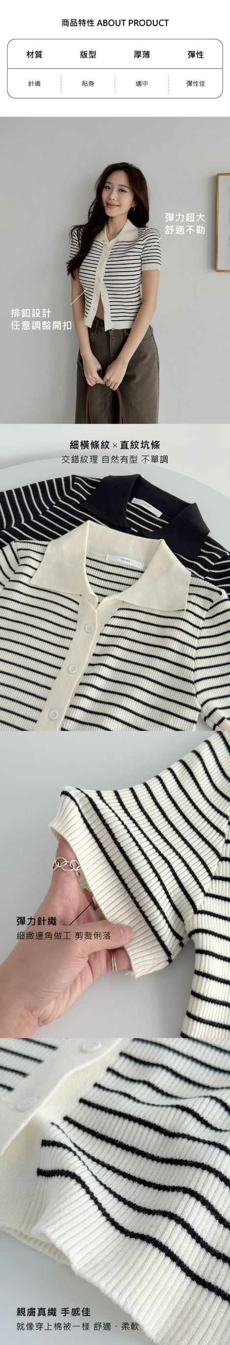 翻領條紋排釦上衣